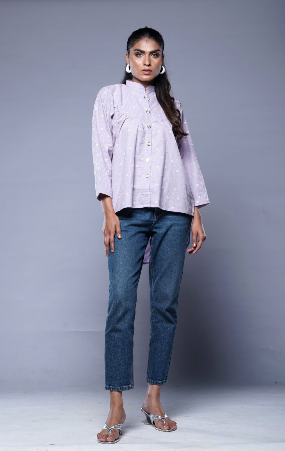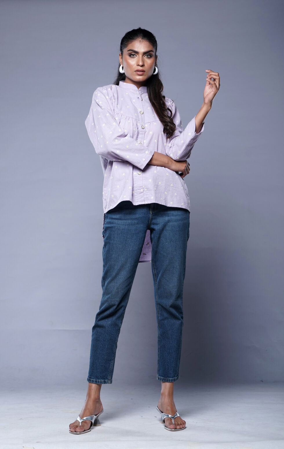 The small motive pattern shirt adds a pop of color and personality to your outfit, making you stand out from the crowd. The intricate design is eye-catching and reflects your unique sense of style. Complete the look with the matching trouser, which complements the vibrant shirt perfectly. The combination of the two creates a harmonious balance that is both fashionable and comfortable.