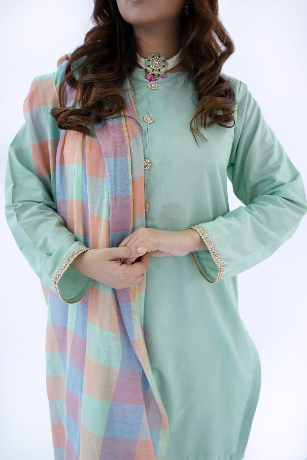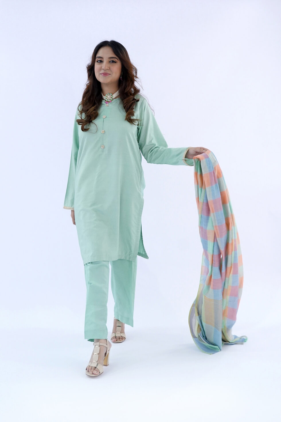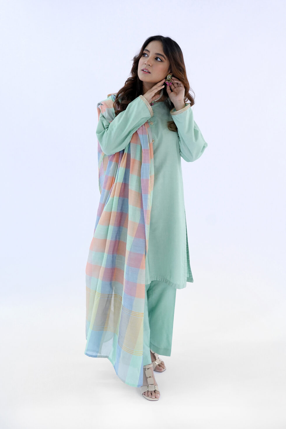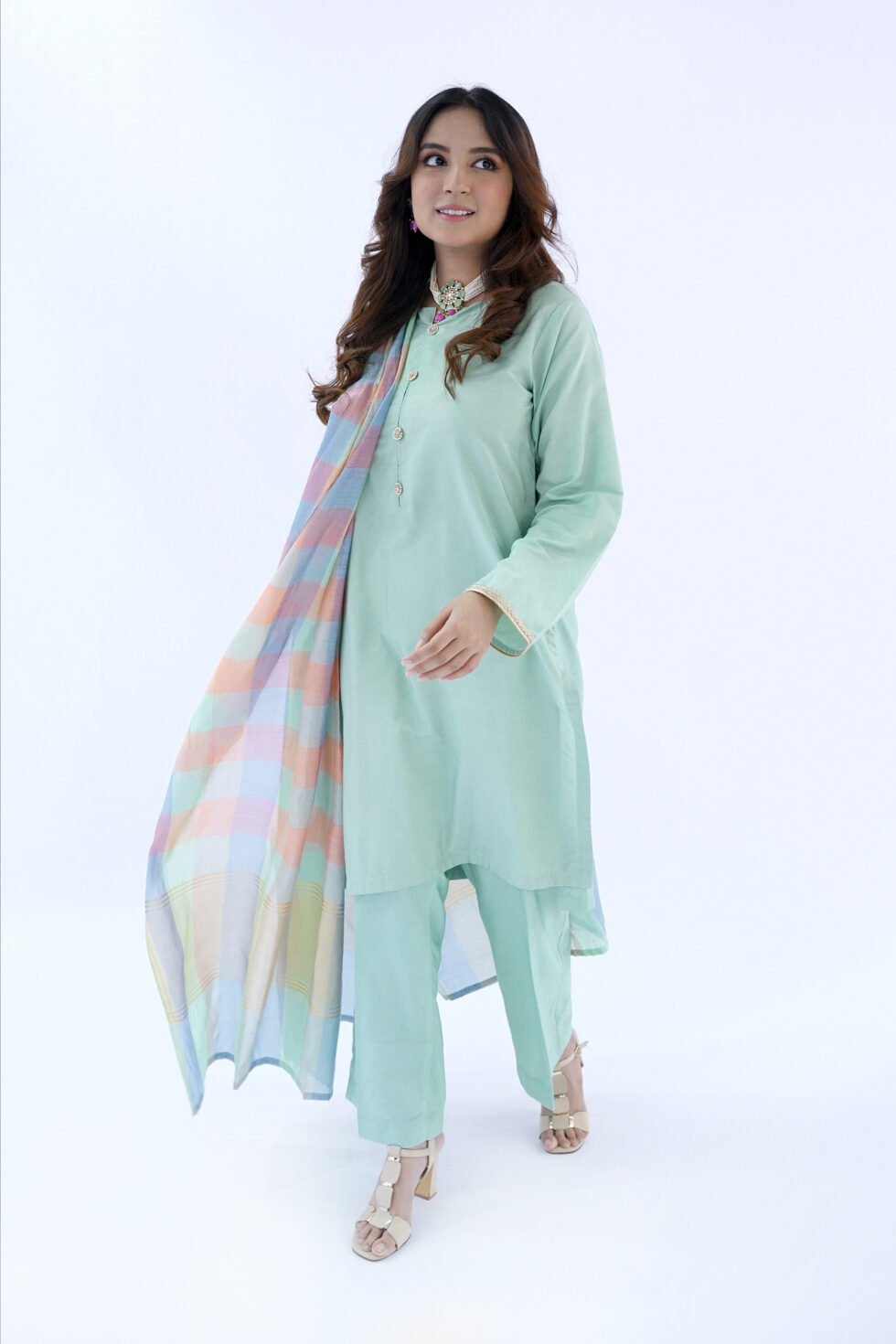 Casual Dress Pakistani – Sea Green – 3 Pcs