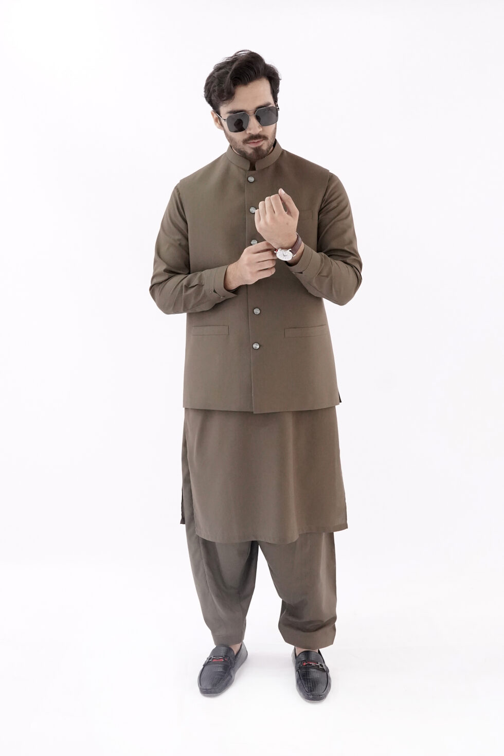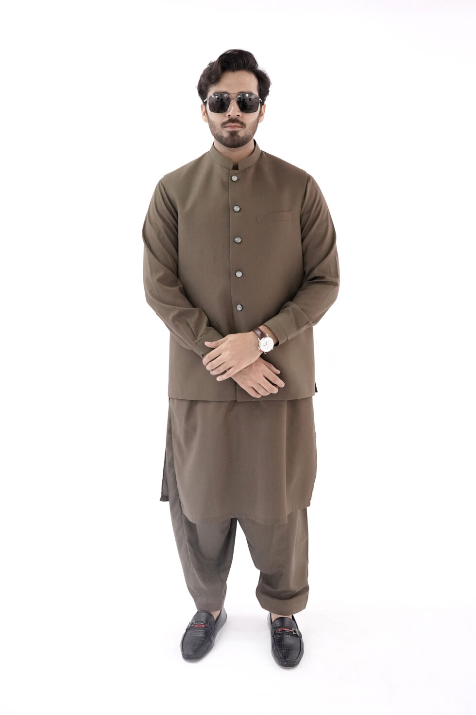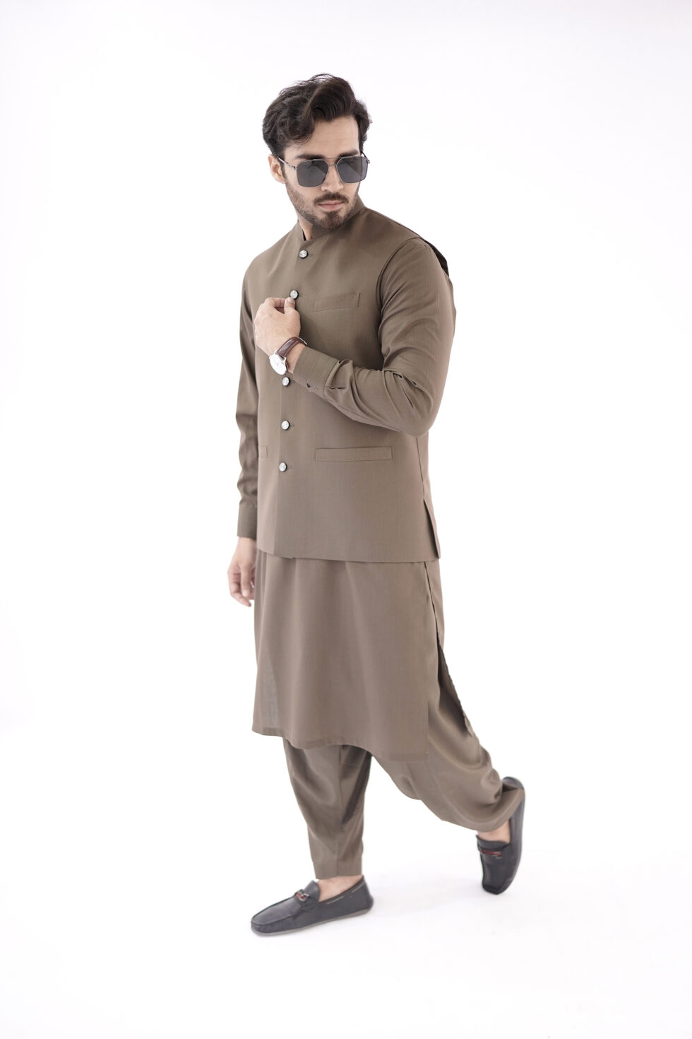 The lining brown exudes sophistication and versatility, making it easy to pair with different accessories and shoes. Whether you want to dress it up with a statement waistcoat or keep it simple with a classic pair of mojari shoes, this mens kurta shalwar effortlessly adapts to your personal style.