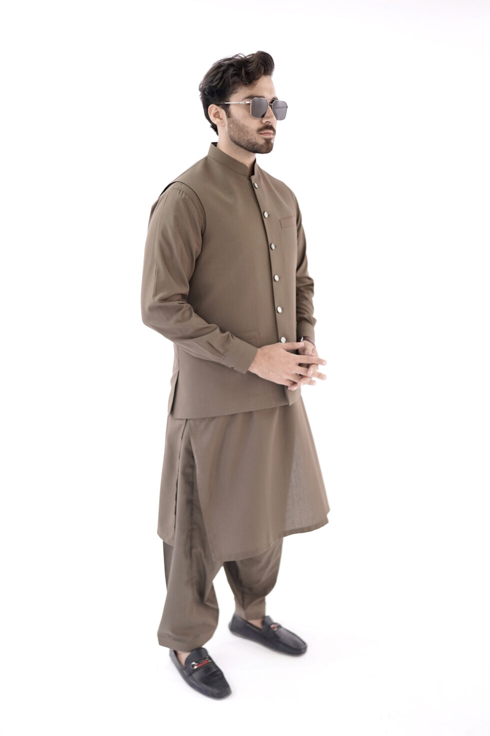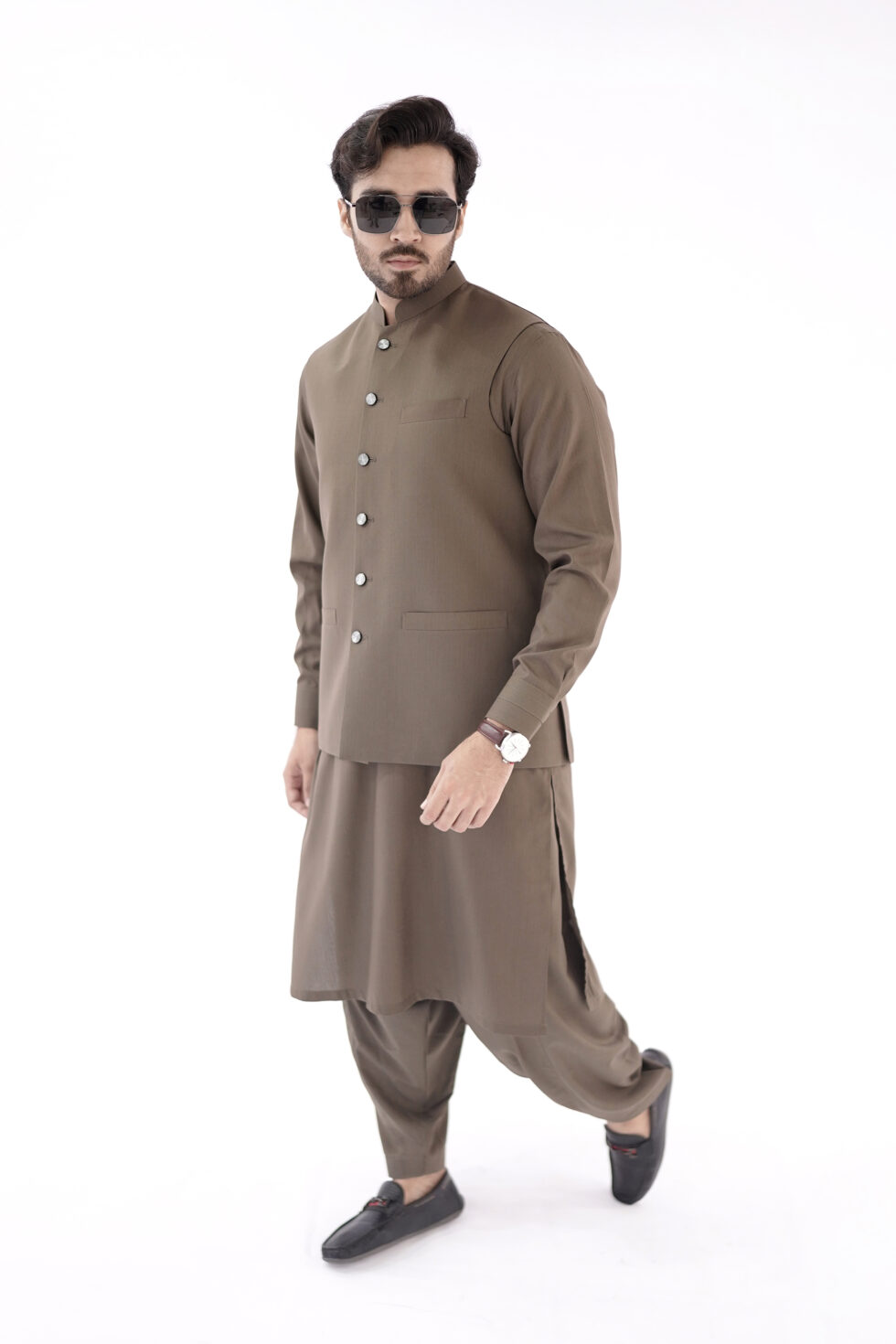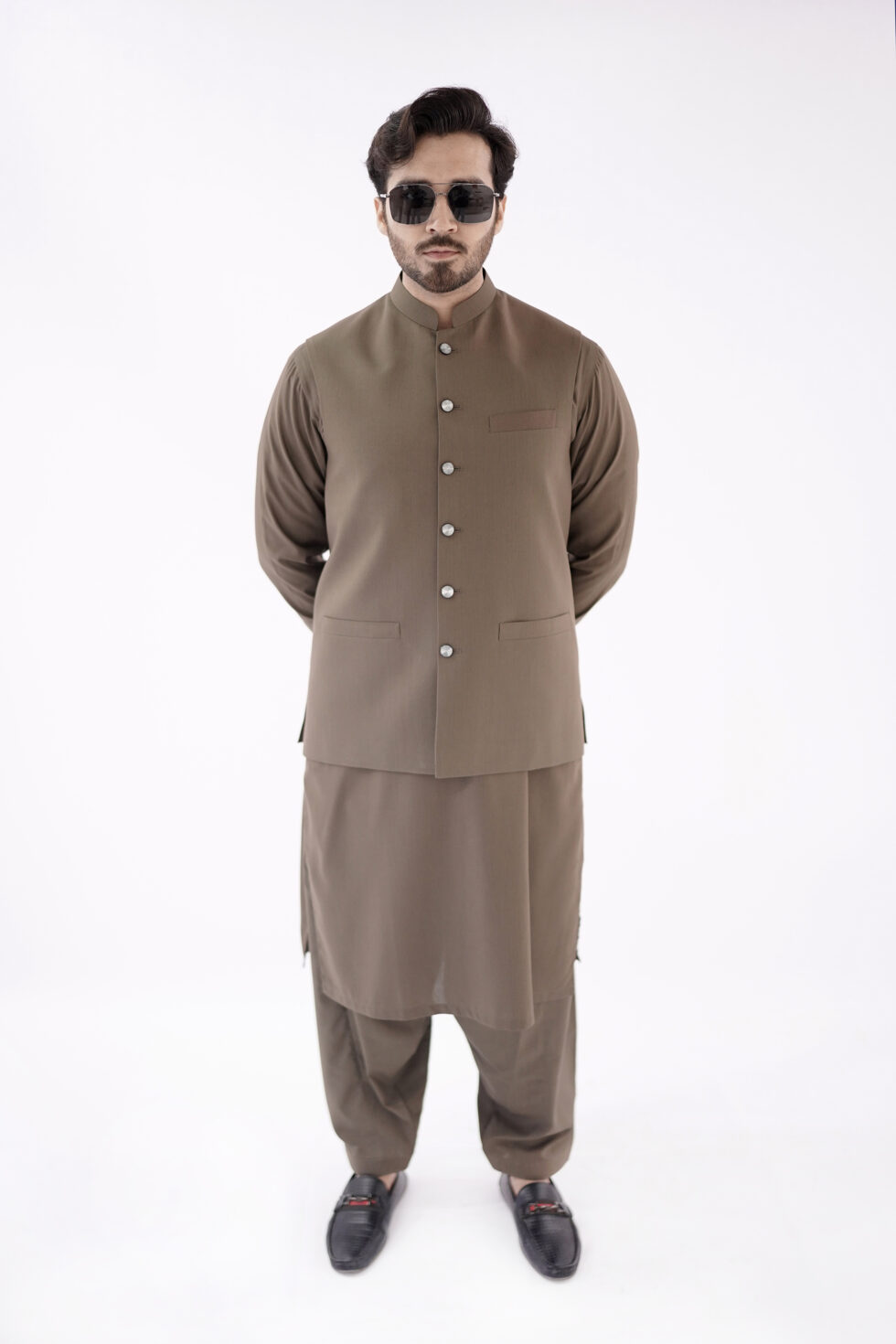 The lining brown exudes sophistication and versatility, making it easy to pair with different accessories and shoes. Whether you want to dress it up with a statement waistcoat or keep it simple with a classic pair of mojari shoes, this mens kurta shalwar effortlessly adapts to your personal style.