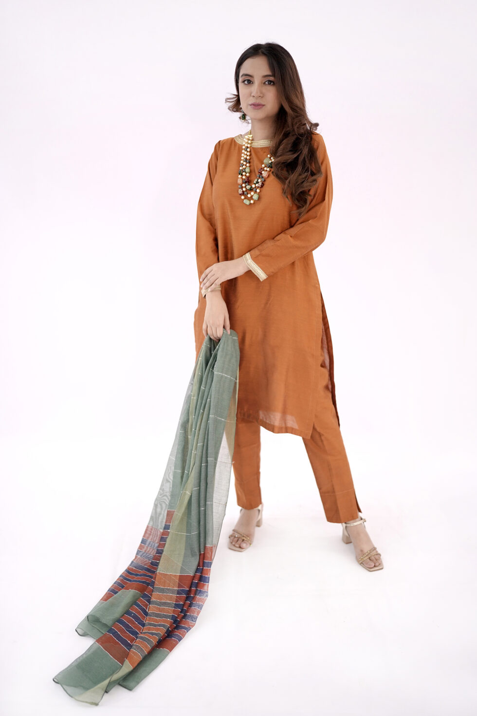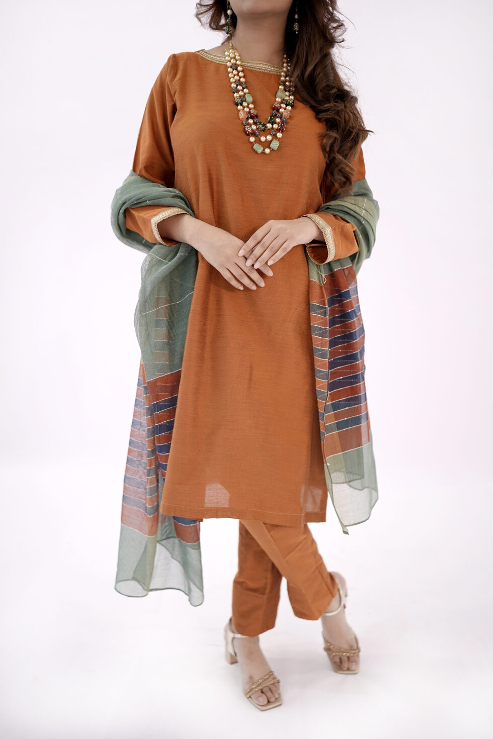 Dress for Parties – Tangerine – 3 Pcs – With Dupatta