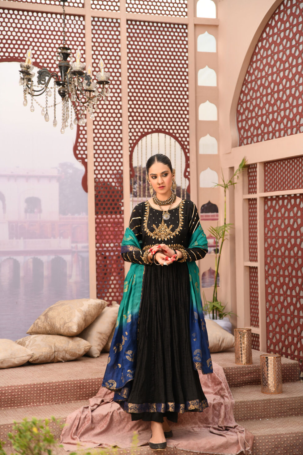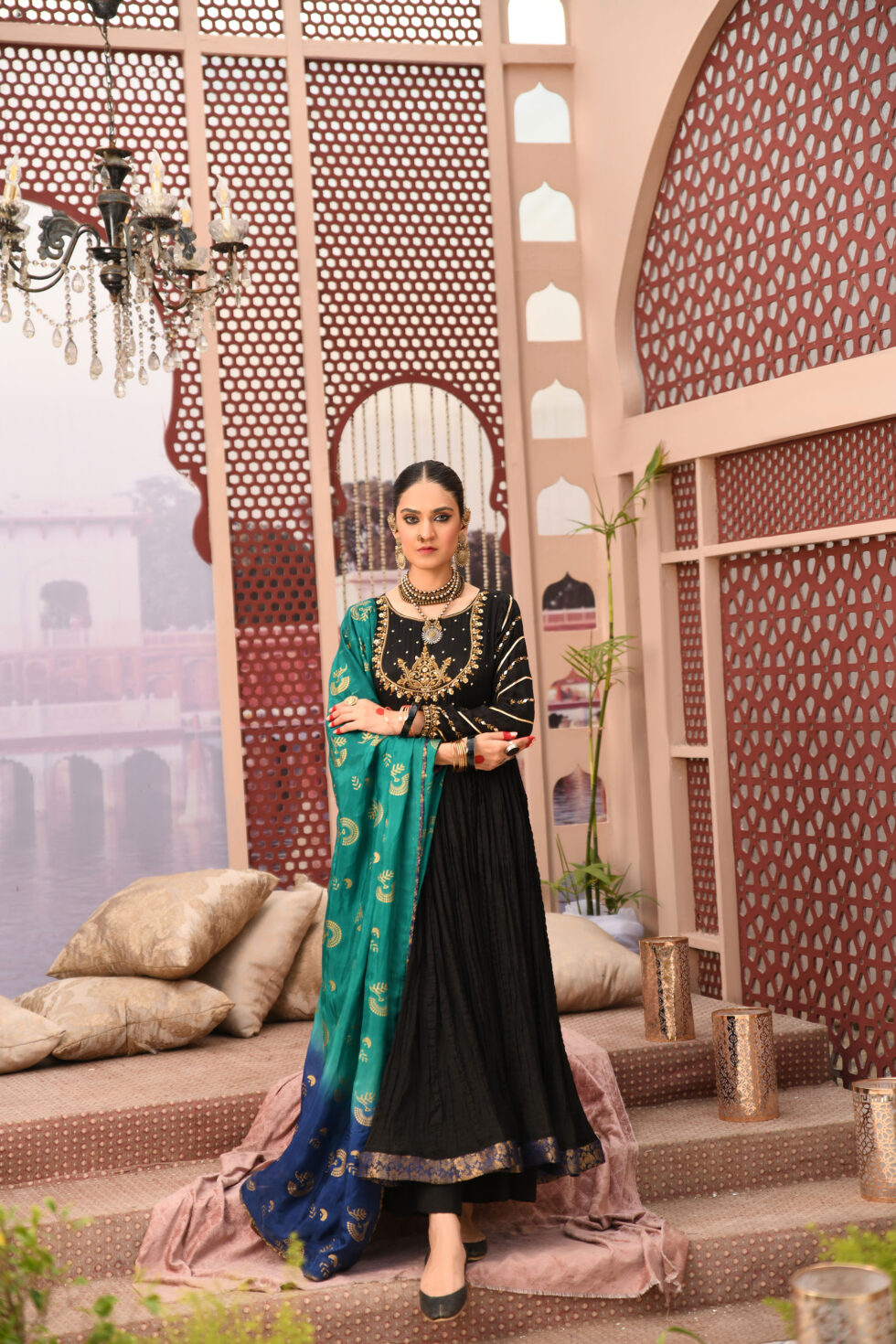 Whether you’re attending a wedding, a dinner party, or a special event, this black party dress for women with dupatta is sure to turn heads and leave a lasting impression.