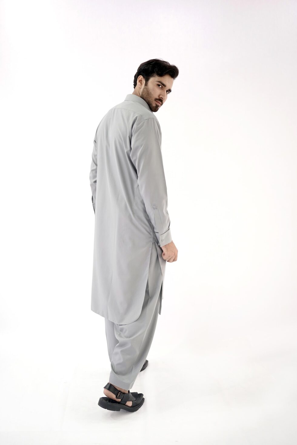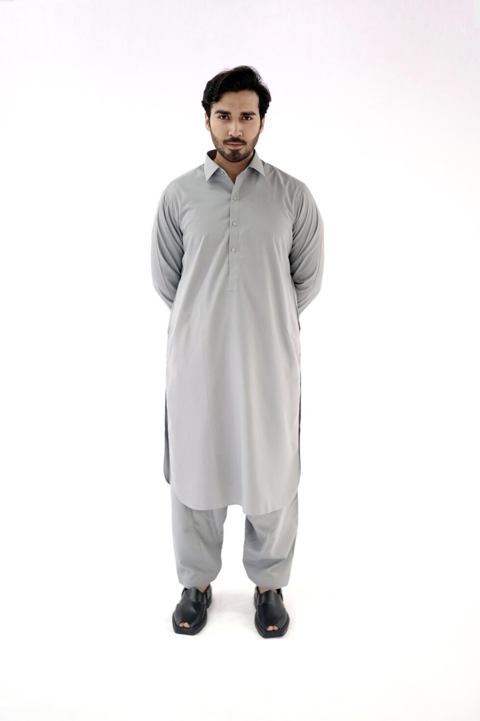 Introducing the gents kameez shalwar in a Cement Grey color, designed to embrace both comfort and style. This regular-fit ensemble is perfect for any occasion, whether it’s a festive celebration or a casual outing.