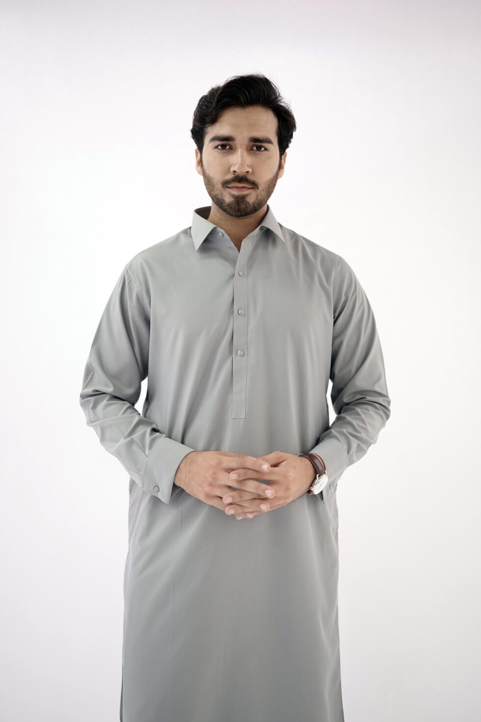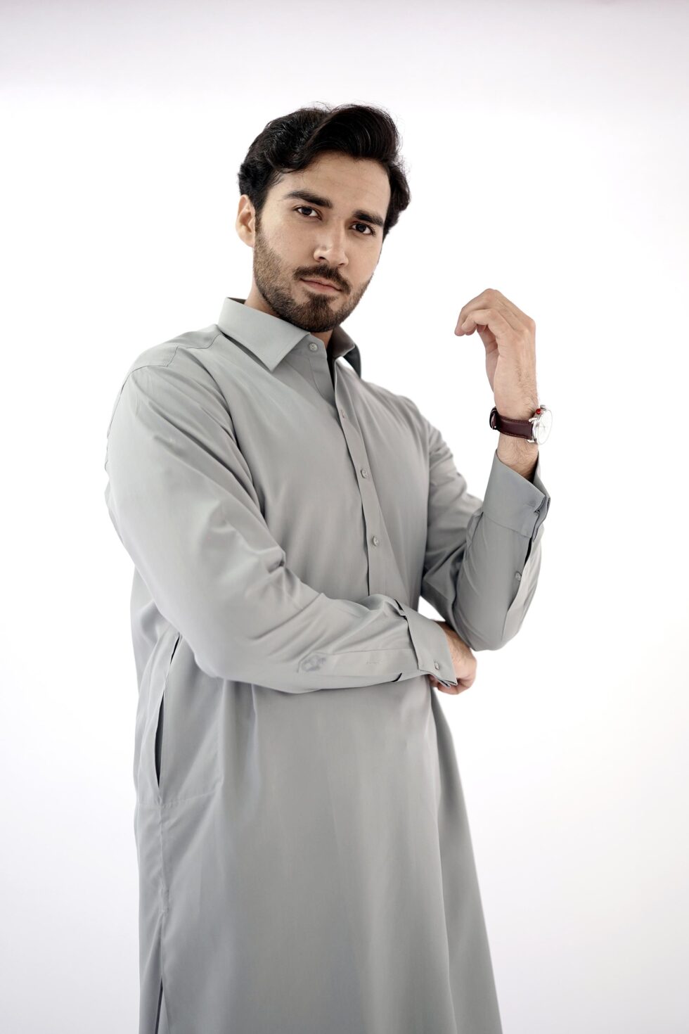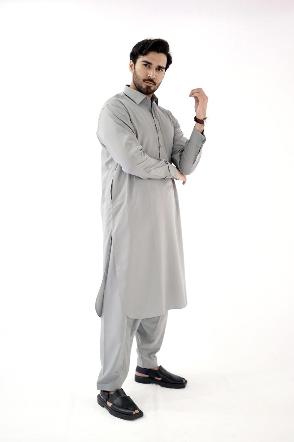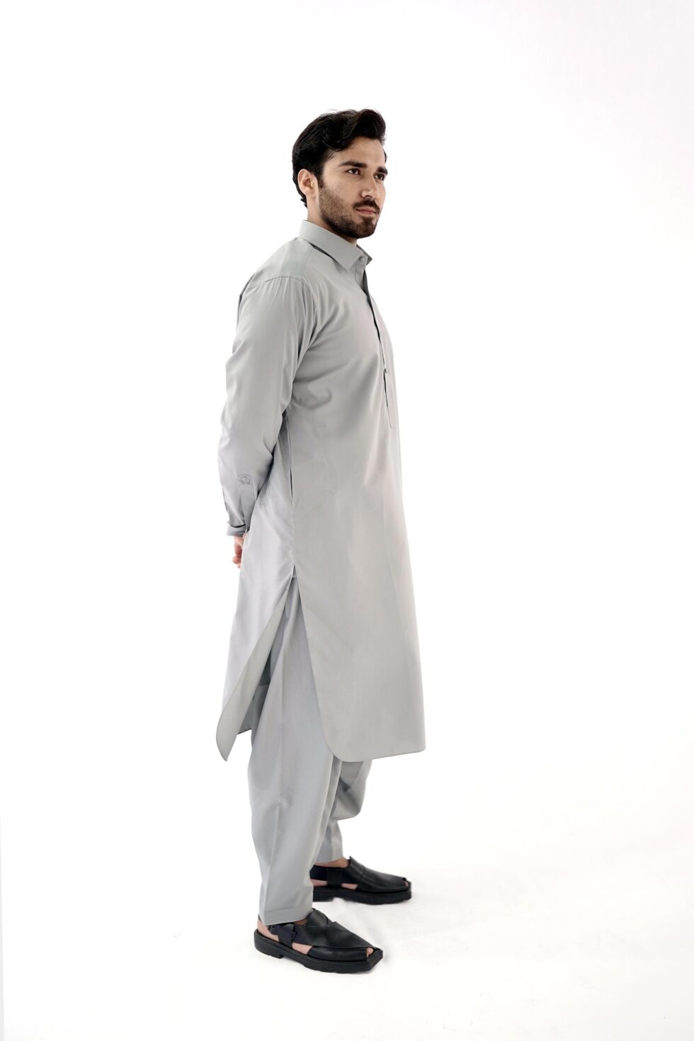 So why settle for ordinary when you can stand out in style? Step into the spotlight with confidence, wearing this Cement Grey gents kameez shalwar that combines tradition with modernity. Elevate your fashion game and make a lasting impression wherever you go.