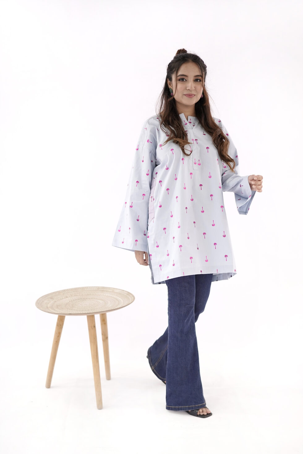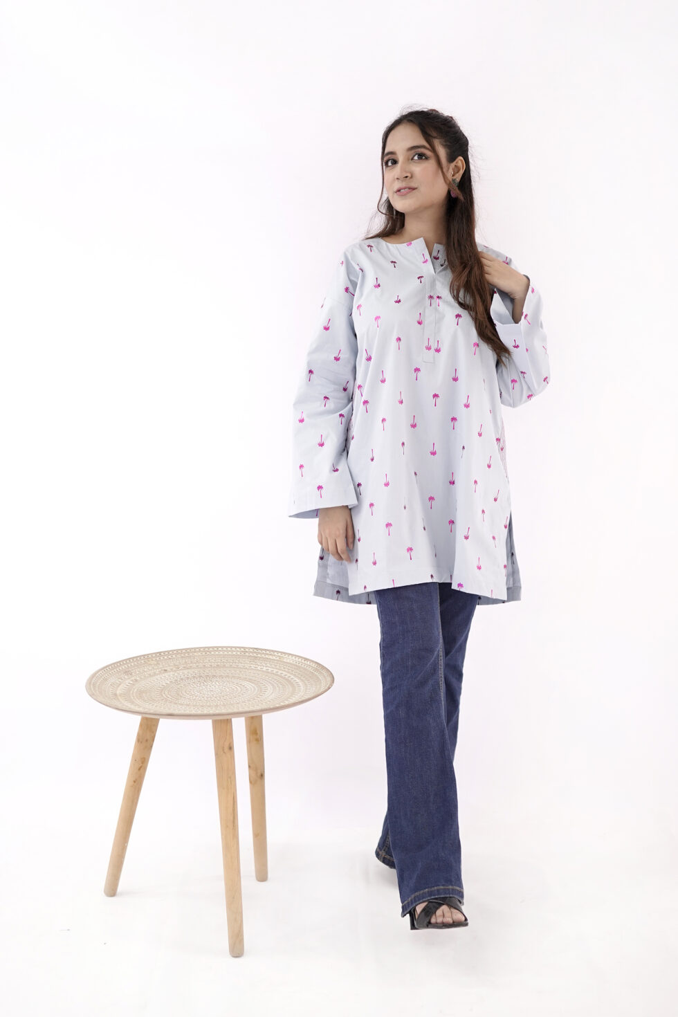 The Light Blue ladies kurta design features a flattering silhouette that effortlessly flatters every body type. Its loose and relaxed fit allows for easy movement, making it an ideal choice for women on the go.