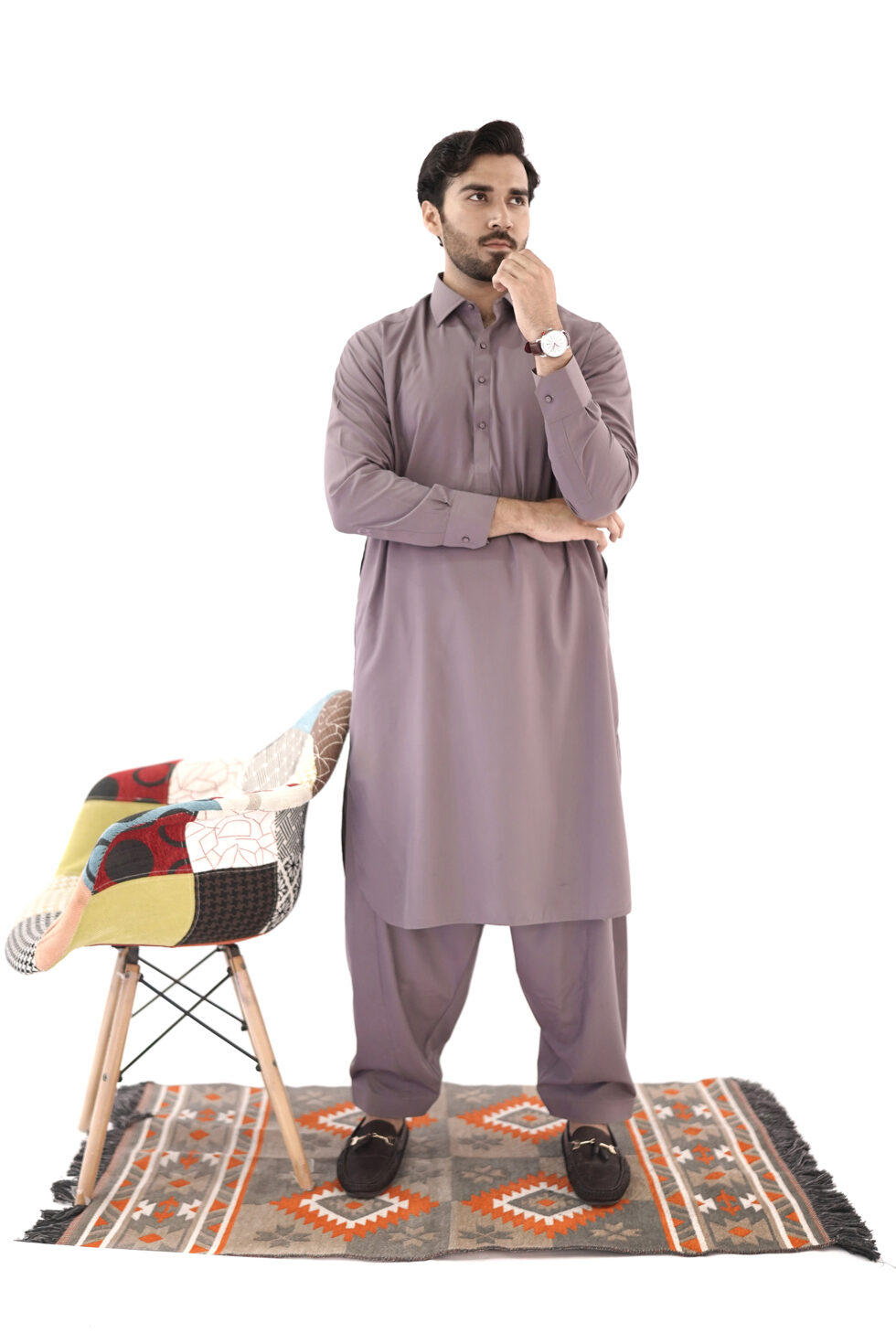 Introducing the mens stitched shalwar kameez in a Deep Purple color, designed to embrace both comfort and style. This slim-fit ensemble is perfect for any occasion, whether it’s a festive celebration or a casual outing.