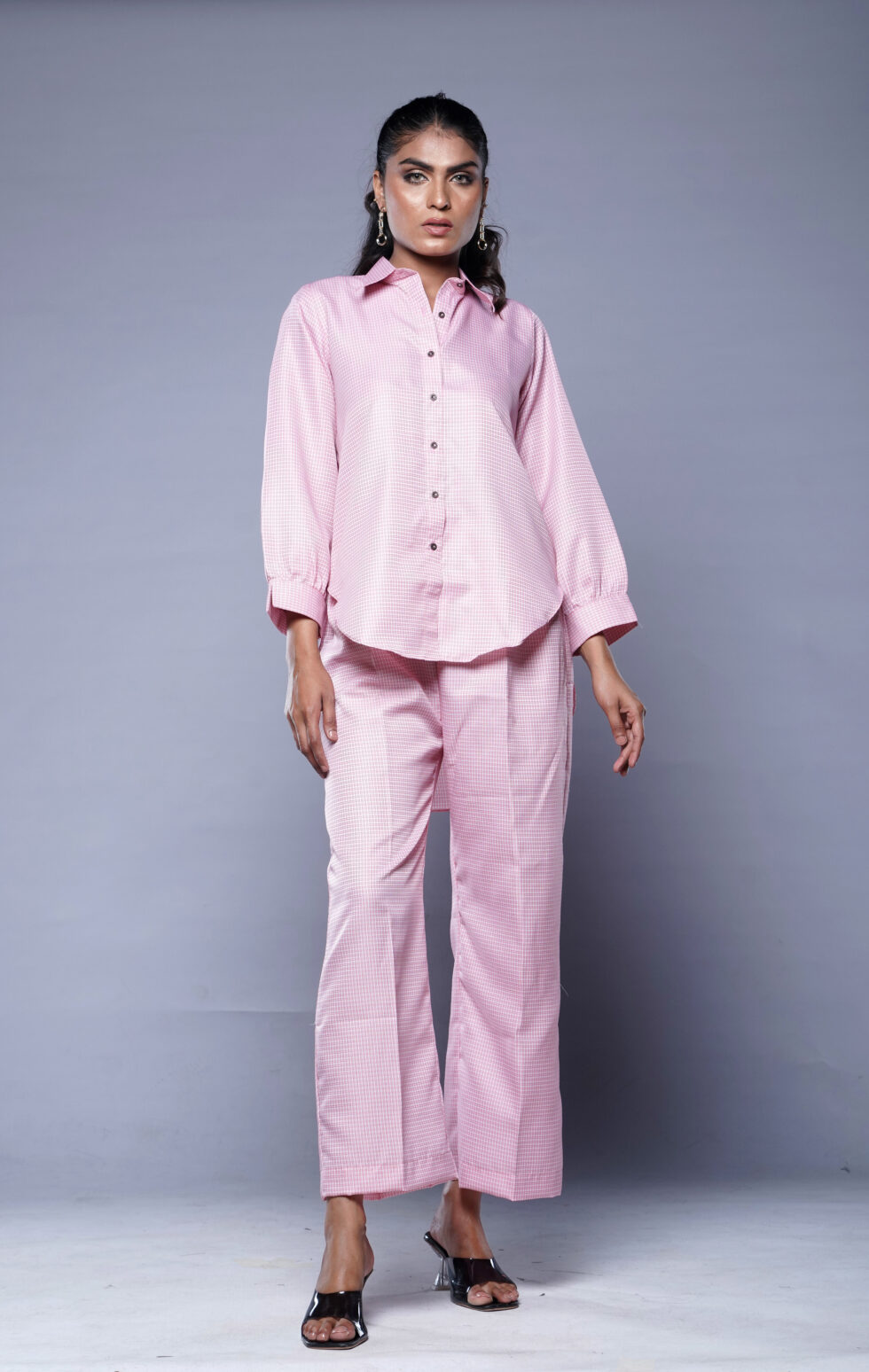 The small motive pattern shirt adds a pop of color and personality to your outfit, making you stand out from the crowd. The intricate design is eye-catching and reflects your unique sense of style. Complete the look with the matching trouser, which complements the vibrant shirt perfectly. The combination of the two creates a harmonious balance that is both fashionable and comfortable.