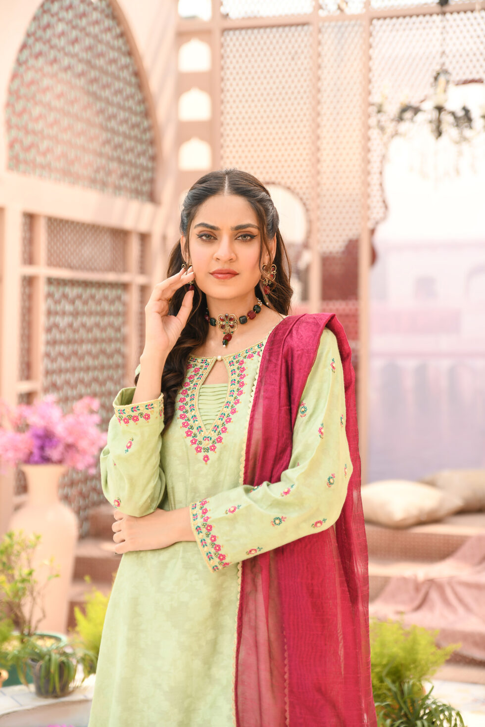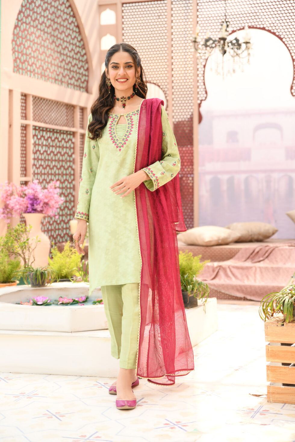 Whether you’re attending a wedding, a dinner party, or a special event, this 3 piece suit for women with dupatta is sure to turn heads and leave a lasting impression.