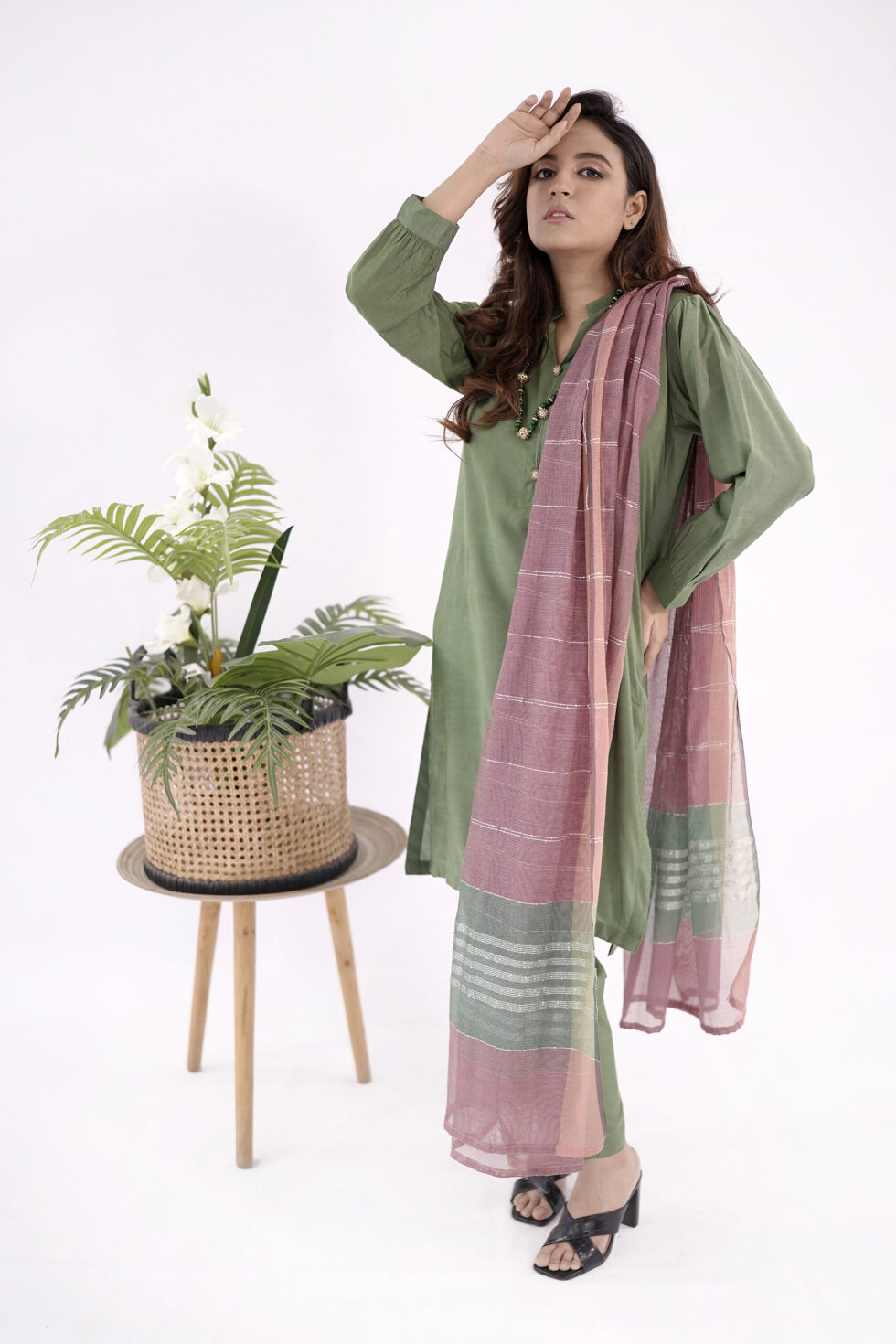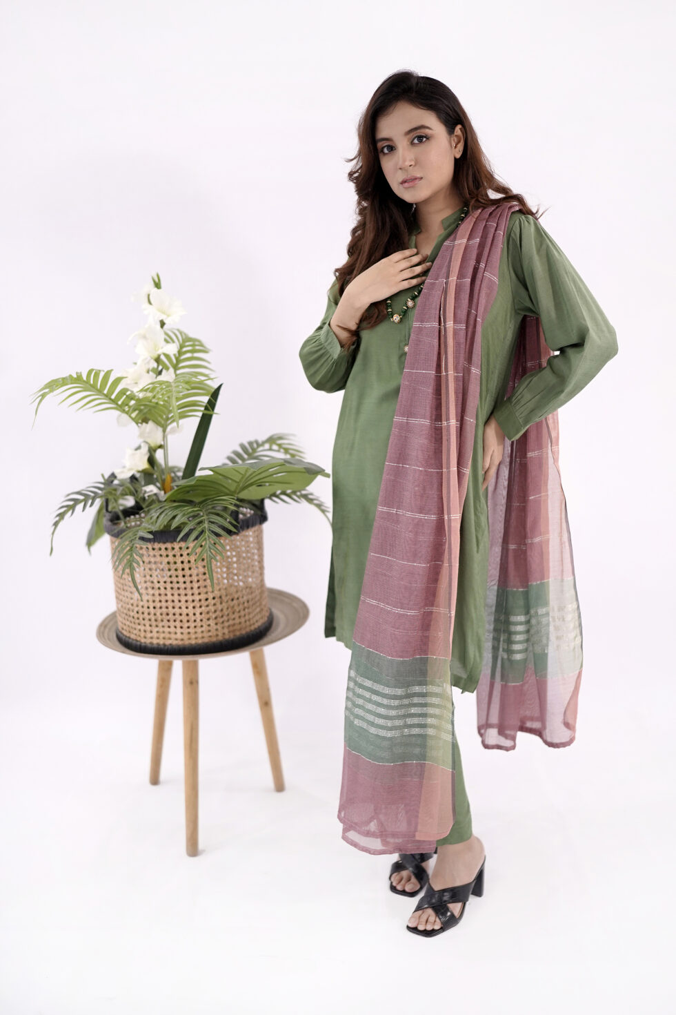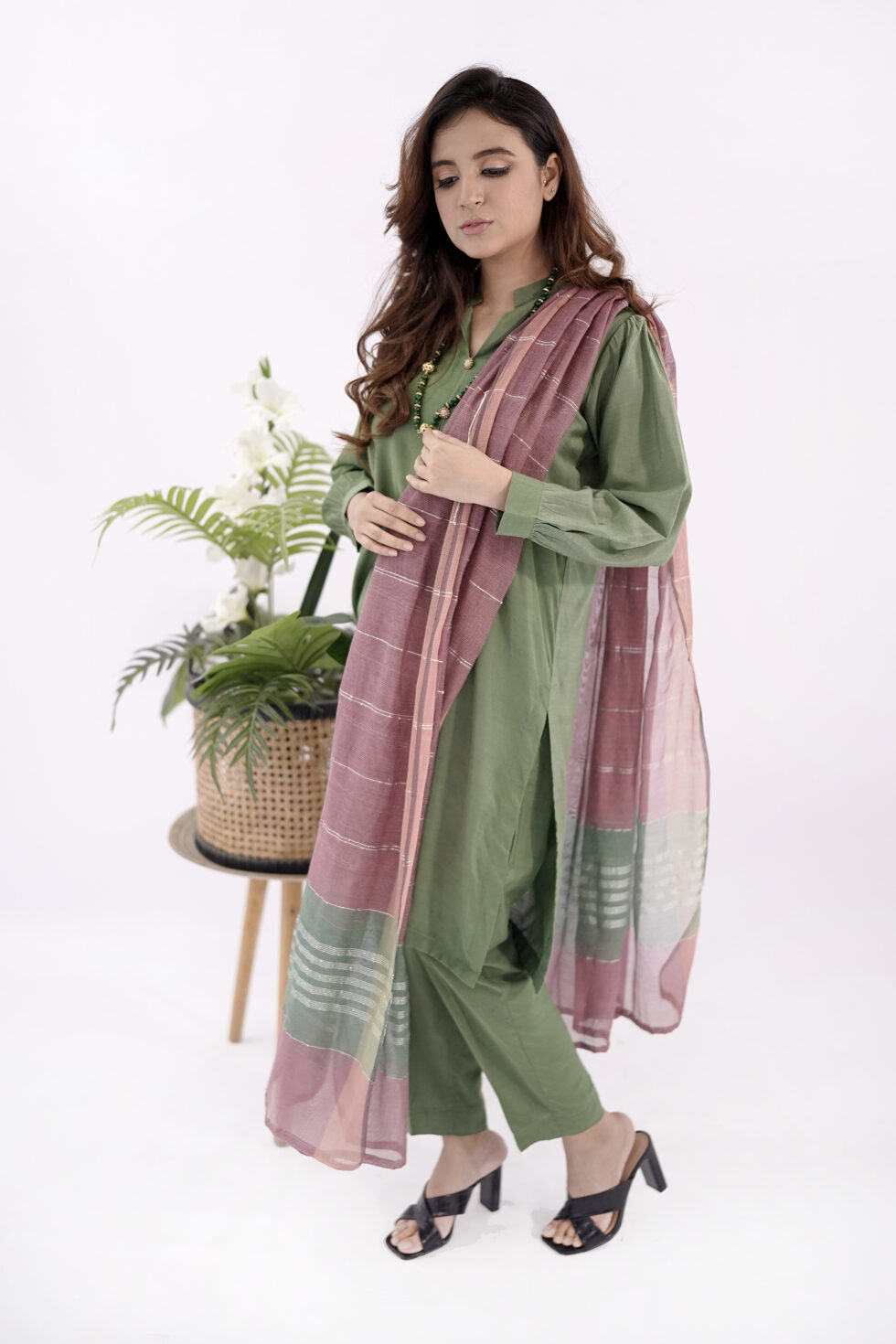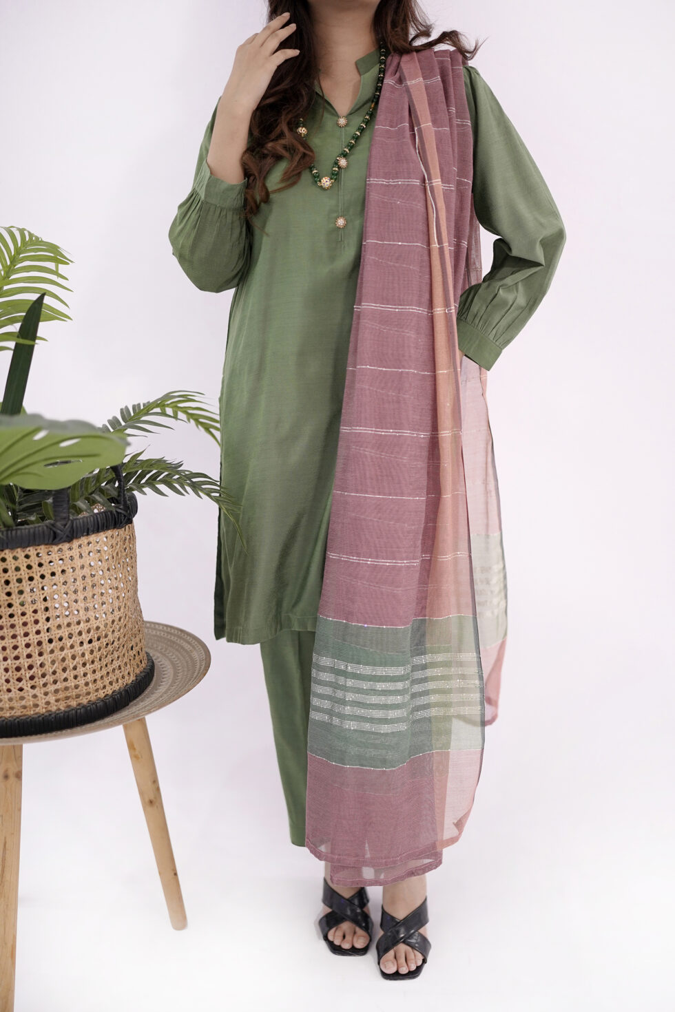 Introducing the readymade dress for ladies Leaf Green—a captivating ensemble that effortlessly combines style and comfort.