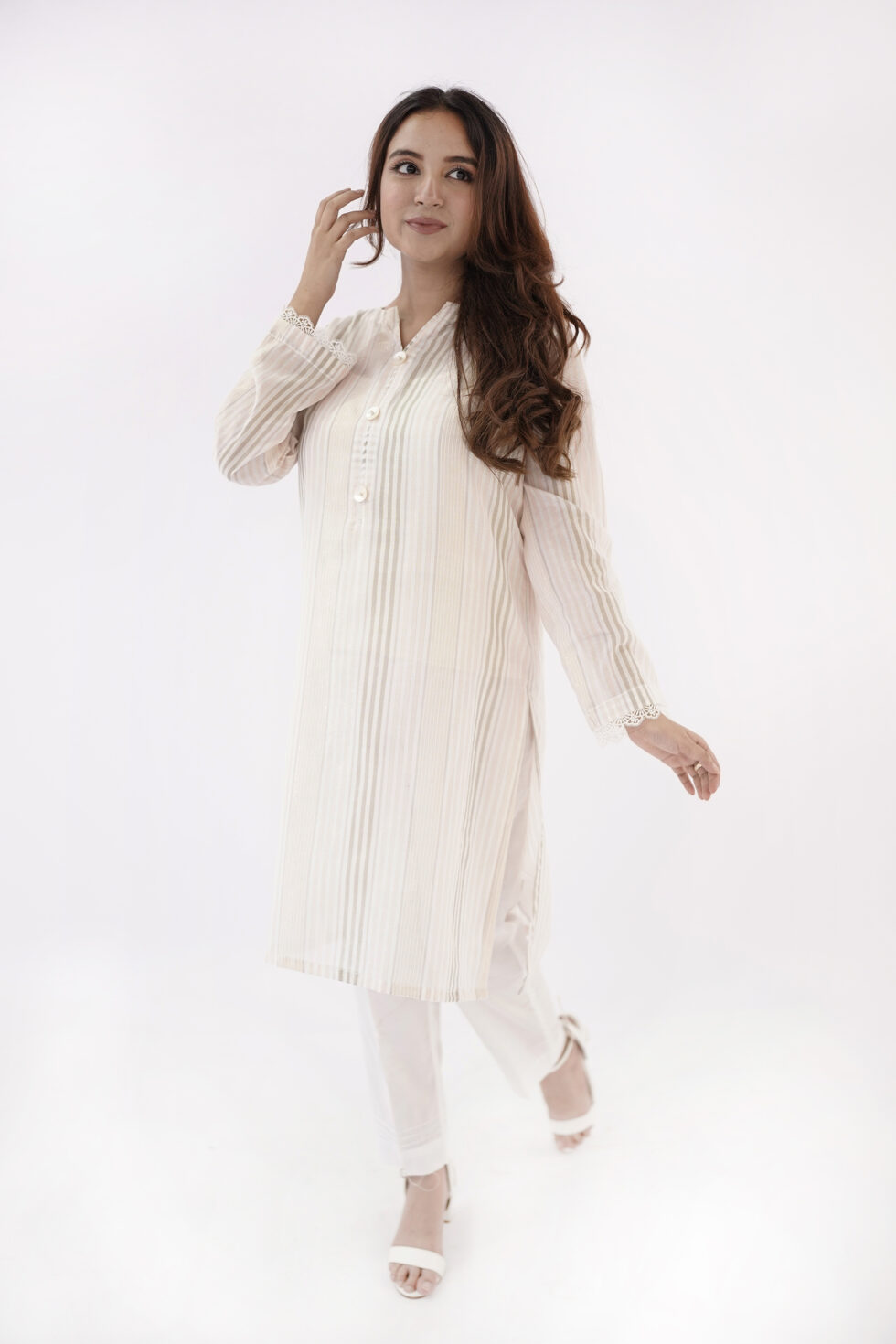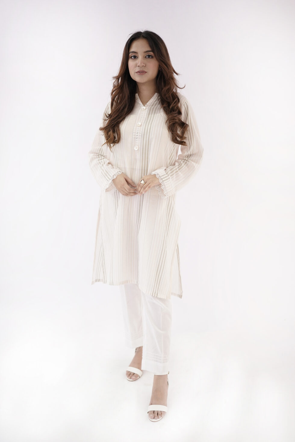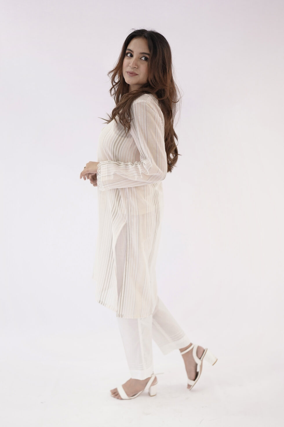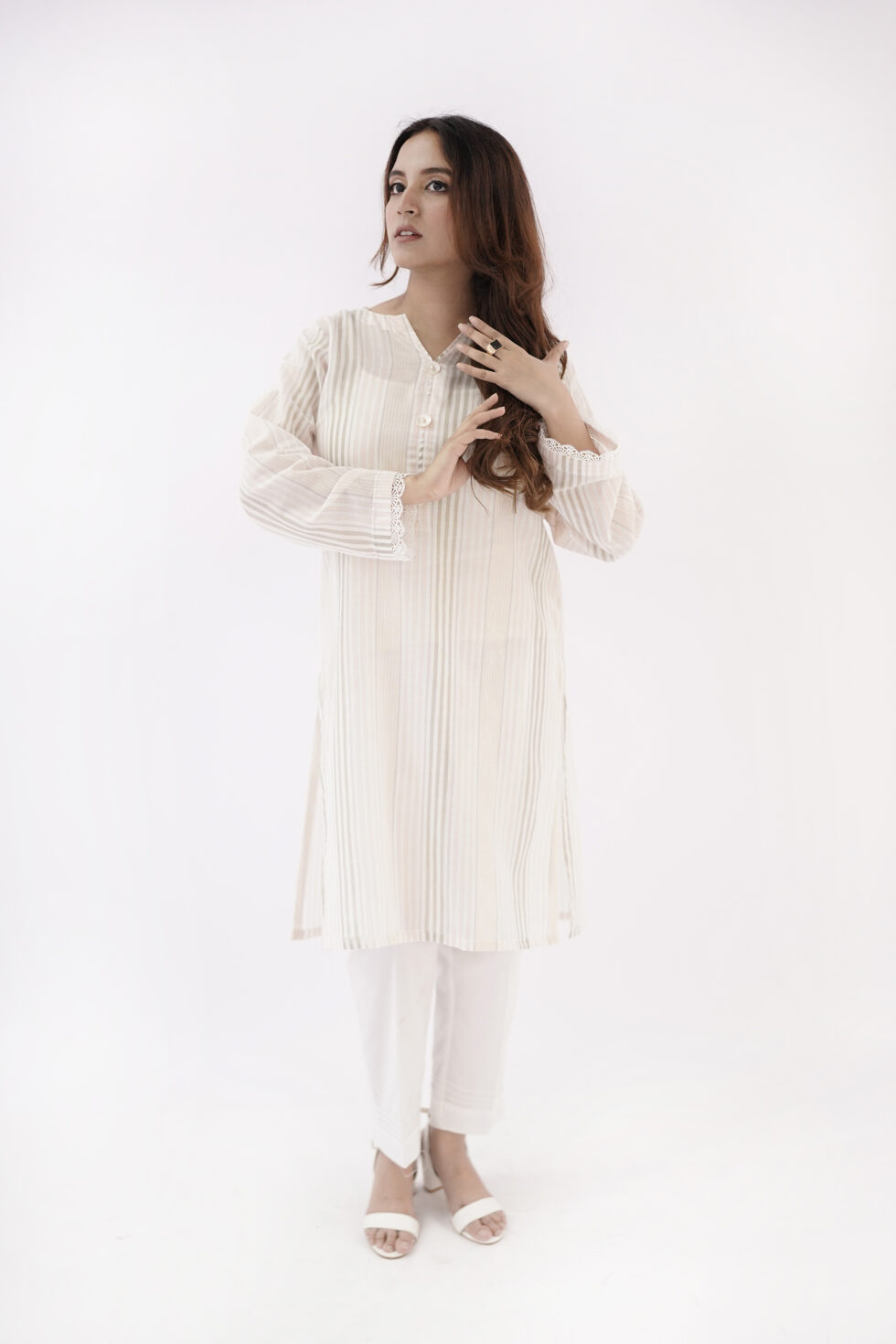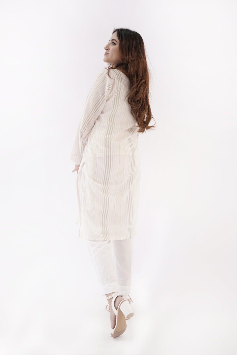 The regular fit of this white kurta dress ensures a flattering silhouette for every body type. The full sleeves provide an elegant touch while keeping you warm during cooler days.
