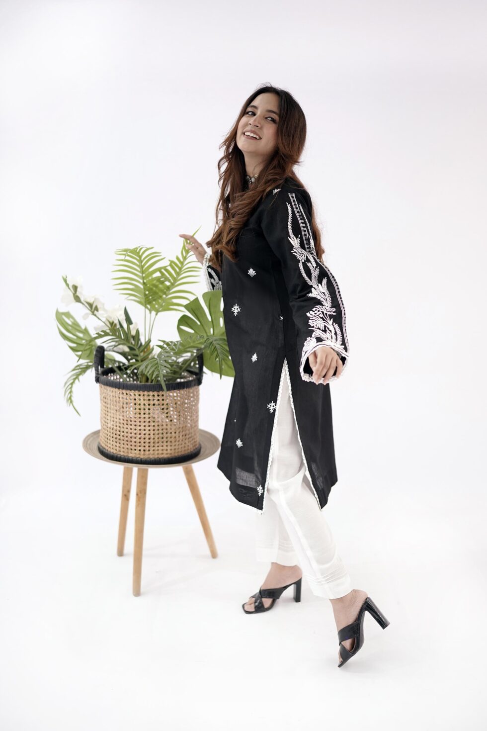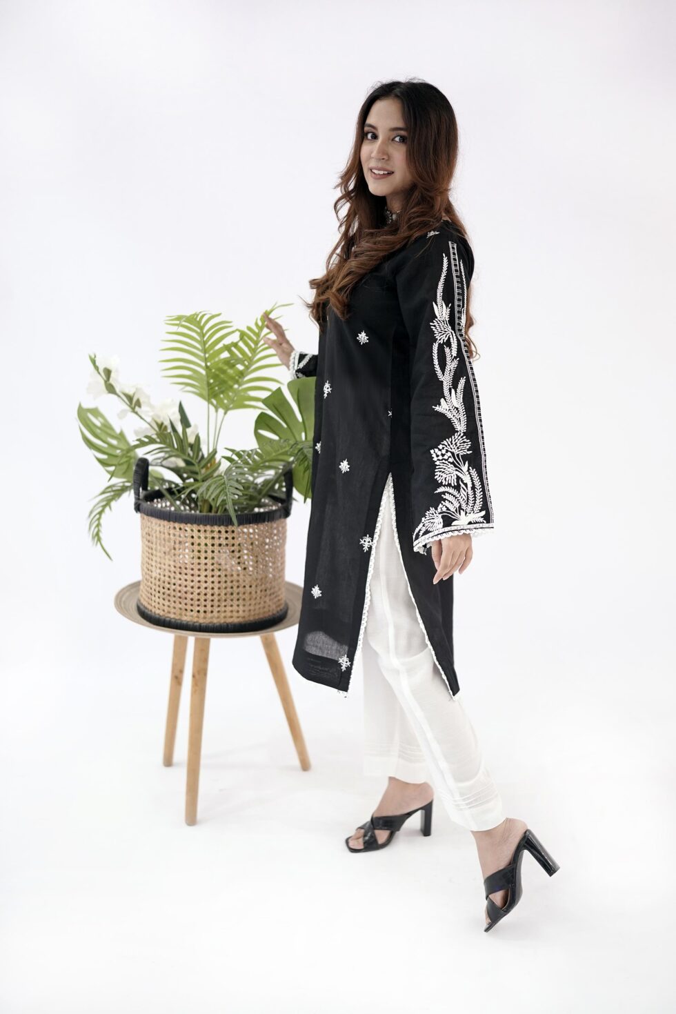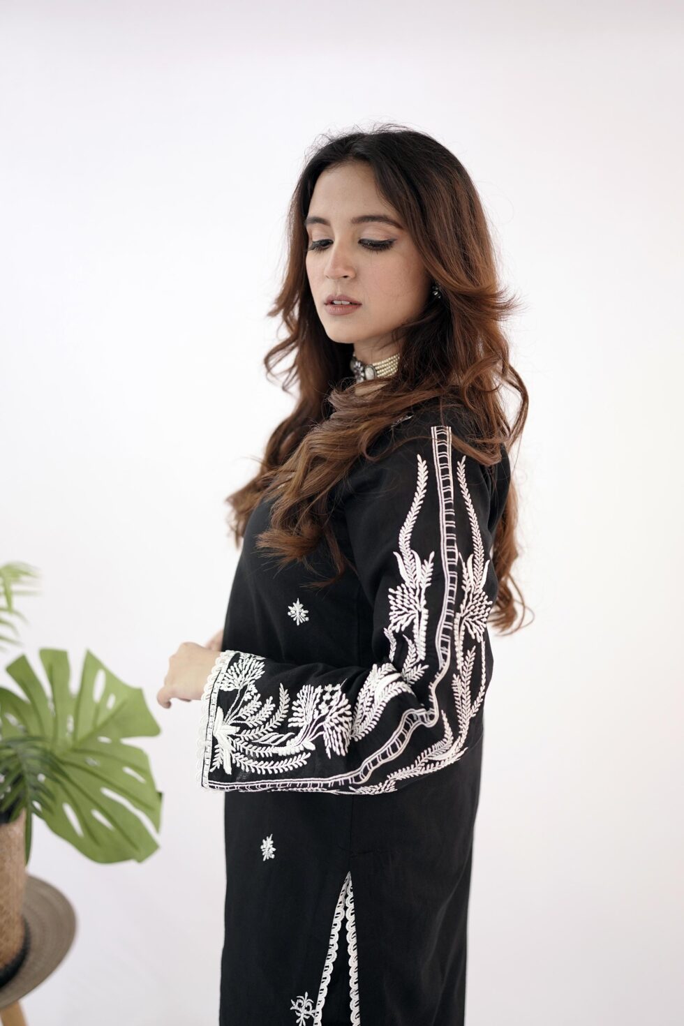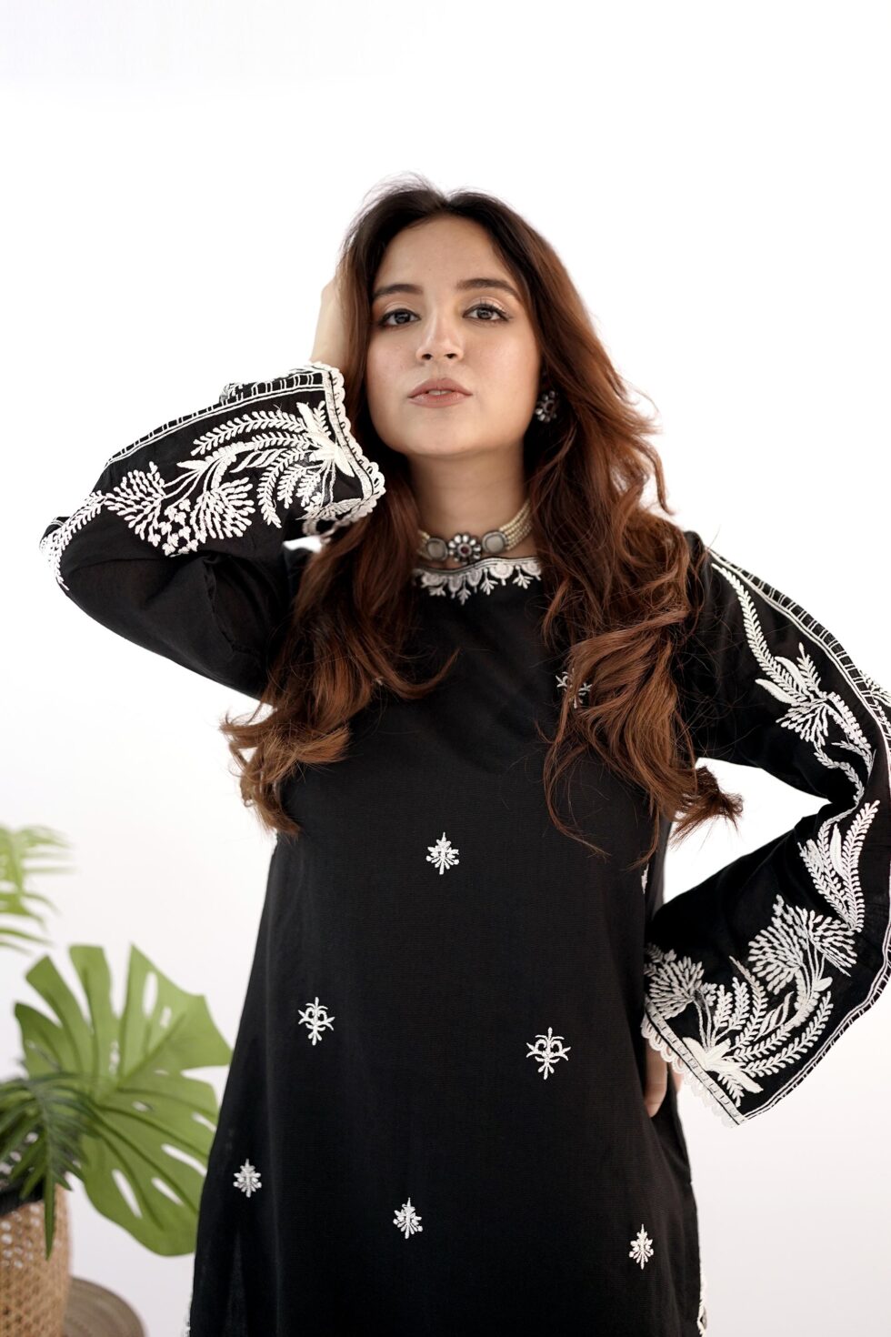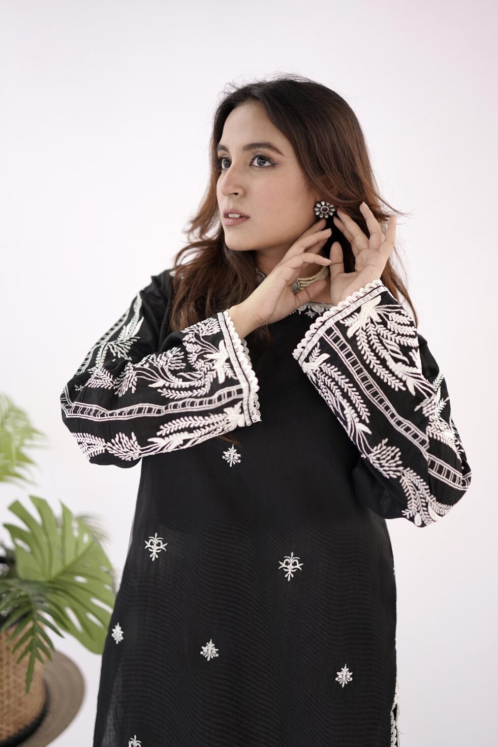 Step into style and comfort with our Black 2 piece stitched suit for women. This modern ensemble is designed to make you feel confident and effortlessly chic.